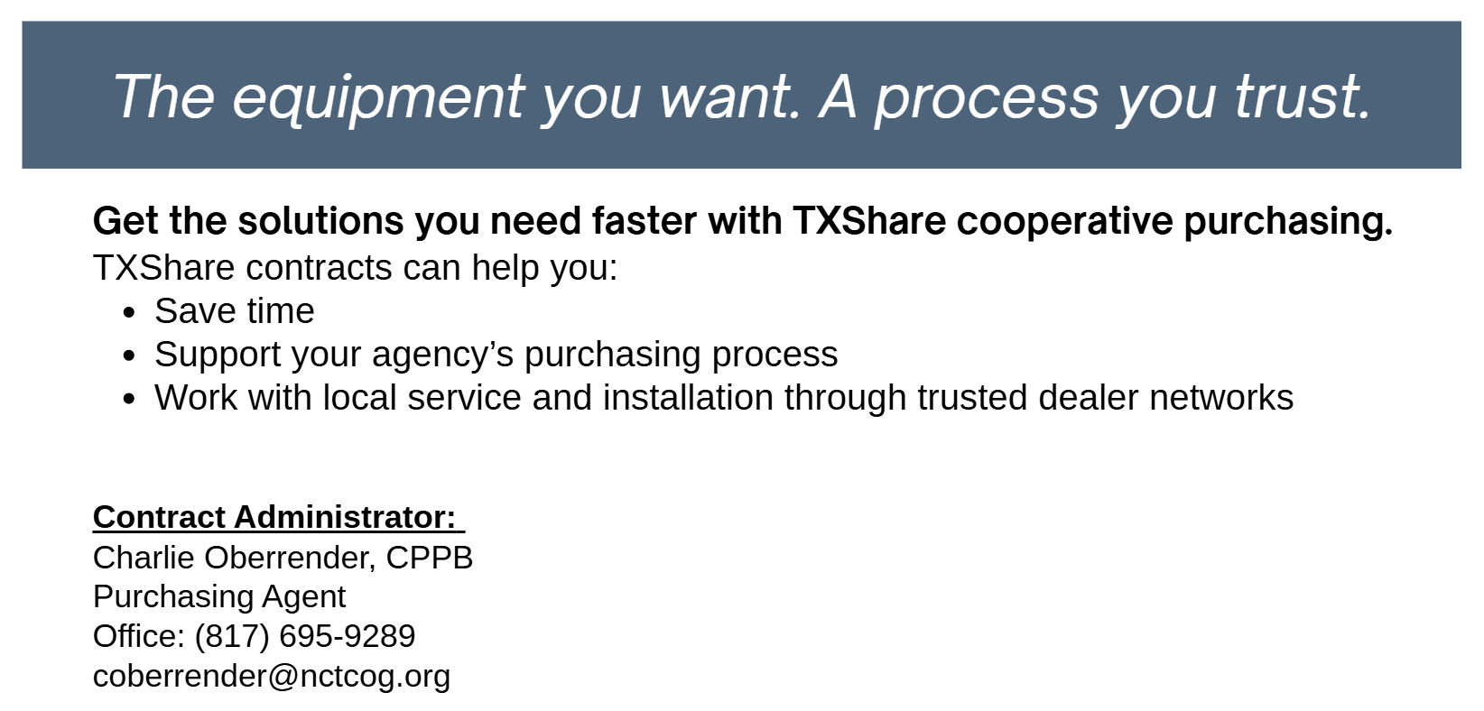 TXShare Waterworks and Wastewater Construction Equipment NCTCOG Board Authorization